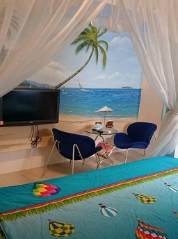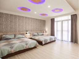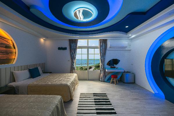 夢幻魚民宿」不僅提供雙人房與四人房,更提供親子四人房,房型皆有不同風格,有像似來到海底世界的海洋風雙人房,不同色階的藍與白組合成夢幻氛圍,讓人捨不得離開房間;充滿現代風格的時尚雙人房,黑與紅搭配讓人沉醉;和室風格的溫馨四人房內,木質地板延伸到天花板,讓人彷彿來進到了樹屋,色彩繽紛郤不失柔和的親子房